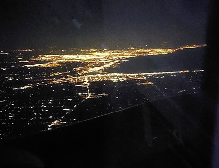 Having heard about Chicago being a war zone, I was a bit dubious about flying into O’Hare for our connection, but it was fine. All we needed was some light cover-fire while we went from Terminal 5 to Terminal 1, and we took a few sniper hits on take-off, but nothing to write home about.