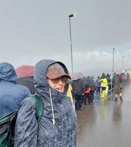 We had a good time, and good (ish) weather on Iona, but waiting for the ferry, the heavens opened and it bucketed down. But this being Britain, and all those in the queue being inveterate travellers, waterproofs and umbrellas suddenly appeared, and the downpour didn’t really seem to bother anyone much.