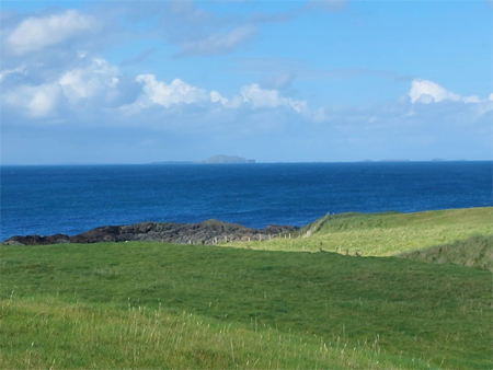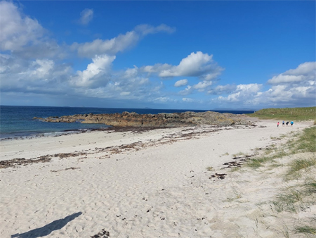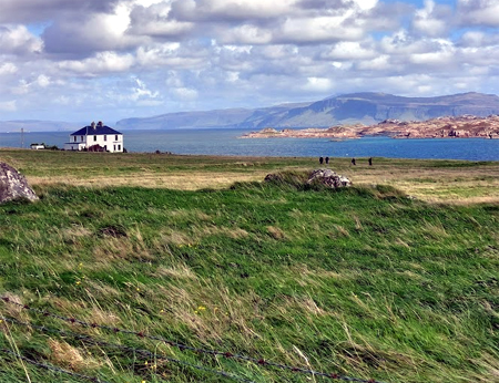 This is how windy it is on Iona That turned out well. Sheltered from the wind and sitting in the sunshine was pleasant, and the scenery was stunning. After we ate, we continued to the beach, and that was even more stunning.